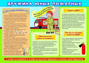 Дружина юных пожарных (ДЮП) — это добровольное противопожарное объединение детей и подростков (обычно 10–17 лет), создаваемое в школах и колледжах для обучения мерам безопасности, профилактики пожаров и профориентации. ДЮП занимаются пропагандой, изучают пожарную технику и тренируются, помогая взрослым защищать жизнь и имущество от огня.